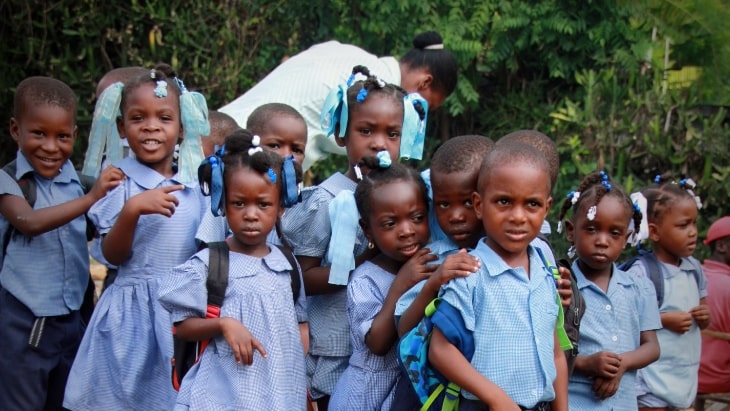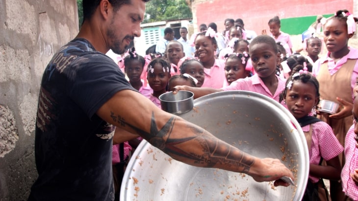 Peter Löhmann setzt sich auch in Haiti für die Kinder in Not ein. Er hat mehrere Schulen und Kindergärten gebaut, damit die Ausbildung der Ärmsten gewährleistet werden kann. Die Ecole Péllerin ist eine Schule in Deschapelles, rund 70 Kilometer nördlich der Hauptstadt Port-au-Prince. Sie wird von rund 700 Schülern im Alter von sieben bis 17 Jahren besucht. Je älter die Kinder, desto kleiner die Klassen.